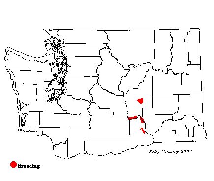 Northern Mockingbirds can be found rarely at any time of year in Washington, but they are most often found in winter. Winter sightings have come from both sides of the Cascades, although they are more common in western Washington. Northern Mockingbirds have, however, nested in eastern Washington's central Columbia Basin at least three times (in Benton and Grant Counties).