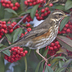 The thrushes are a large family of songbirds found worldwide. The eight species found regularly in Washington have a diet that varies seasonally between insects and other invertebrates in the summer, and berries in the winter. Most are short-distance migrants, but some migrate to the tropics. Many of the thrushes forage primarily on the ground. The thrushes are known for their beautiful, flute-like songs, and are considered some of the best songsters in Washington.